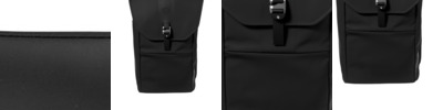 Rubberized 600D poly face-coated PU Rolltop folds under top cover with a heavy-duty metal hook closure Water-resistant, clear-coated mesh pocket under top cover Two side zips for quick access to main compartment and laptop sleeve Large center storage area Deluxe organization panel Adjustable sternum strap Padded straps with daisy chain details Integrated luggage trolley pocket on back Laptop sleeve: 20'h x 11'w; fits most 13' laptops Dimensions: 20'h x 12'w x 5.9'd Capacity: 1,373 cu.in./22.5 L Weight: 2.49 lbs./1.02 kg Note: Bags not intended for use by children 12 and under.