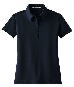 A beautiful and luxurious addition to any wardrobe. Subtle ottoman texture meets the unrivaled performance of Dri-FIT moisture management technology. Engineered with a bonded self-fabric collar for classic refinement. Five-button placket. Heat transfer label for tag free comfort. Pearlized buttons with metal rims. Open hem sleeves. Tailored for a feminine fit with an upper back pleat and contrast heat transfer Swoosh design trademark on the left hem. Made of 5.61-ounce, 87/13 polyester/spandex Dri-FIT fabric. Adult Sizes: S-2XL