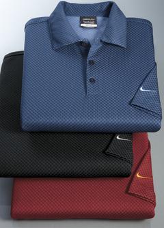 A distinctive pattern meets the undeniable performance of Dri-FIT moisture management technology. A great alternative to a solid shirt, the subtle pattern will complement any logo or decoration. The design includes a self-fabric collar, three-button placket and open hem sleeves. The contrast Swoosh design trademark is embroidered on the left sleeve. Made of 5.16-ounce, 100% polyester Dri-FIT fabric. Adult Sizes: XS-4XL