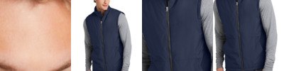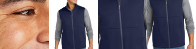 This soft shell vest is made to move with you-regardless of the weather. 100% polyester knit shell with a durable water-repellent (DWR) coating bonded to a water-resistant film insert and a 100% polyester brushed tricot interior Tag-free label 5000MM fabric waterproof rating 5000G/M2 fabric breathability rating Coated reverse coil center front zipper Dyed-to-match binding at arm holes Hidden front reverse coil zippered pockets Open hem