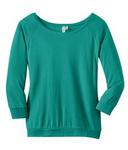 Team this raglan with denim for instant cool. 3.5-ounce, 60/40 ring spun combed cotton/modal 40 singles Feminine open neckline Ladies Sizes: XS-4XL