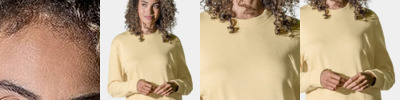 - Heavy gauge 2x2 ribbed-knit crewneck collar, waistband, and cuffs