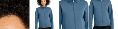 Perfectly polished, this elevated, sueded full-zip performs with stretch and transcends the line between work and leisure. 9.1-ounce, 50/44/6 rayon/recycled poly/spandex double knit fleece OGIO heat transfer label for tag-free comfort Neck taping Cadet collar Embossed OGIO logo locker loop Reverse coil zipper with debossed, brushed silver O icon pull Two-piece sleeves Front and back seaming Forward shoulders Hidden zippered pockets with silver pulls Banded cuffs Embroidered O icon on left hem