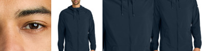 Developed for training and beyond, Nike Pro is all about feeling confident and doing your best. This breathable jacket steps up with Dri-FIT moisture management technology for optimal performance. Details include an adjustable hood, dyed-to-match drawcords, exposed dyed-to-match zipper, zippered front pockets and elastic cuffs. Navy/Game Royal has a contrast color hood panel. The contrast heat transfer Swoosh logo is on the left sleeve. Includes a Nike Pro branded elastic back hem. Made of 3.5-ounce, 80/20 polyester/elastane Dri-FIT fabric with at least 75% recycled content.