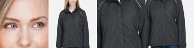 3.9 oz./yd²/132 gsm (US), 6.5 oz./L yd (CA) Shell: 100% polyester twill, with water resistant and cire finish Shell Lining; Polyester taffeta Liner Jacket: 7.7 oz Polyester anti-pill fleece Storm flap with hidden snaps at top and bottom Inside placket; roll-away hood; adjustable cuffs with tabs Lower concealed pocket with zippers and reflective toggles Audio port access through inside left pocket Thermal retention shockcord at hood and drop back hem Reflective piping at shoulder yoke and upper back panels Inside placket on liner Center-front reversible zipper Lower concealed pockets with autolock zippers Audio port access through inside left pocket