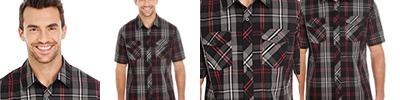 B9202WR Men's Short-Sleeve Plaid Pattern Woven Shirt