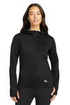 Before or after training, this layerable hoodie with stretch is casual-comfort perfection. 7.1-ounce, 57/38/5 modal/poly/spandex fleece OGIO heat transfer label for tag-free comfort 3-panel hood Cowl neck Metal grommets and dyed-to-match twill drawcords Princess seams Open hem Metal die cut O on front left hem Side vents