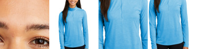 This lightweight pullover locks in color and wicks moisture. It's versatile enough for year-round wear. 3.8-ounce, 100% polyester interlock with PosiCharge technology Tear-away removable label Cadet collar Reverse coil zipper Set-in sleeves Open cuffs and hem