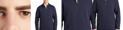 This double knit, cotton-rich pullover is a triumph with integrated pockets and rubberized zippers for a modern look and feel. 7.1-ounce, 71/29 cotton/poly double-knit fleece Cadet collar Tag-free label Rubberized center front zipper Front pouch pocket with integrated rubberized zippered pocket