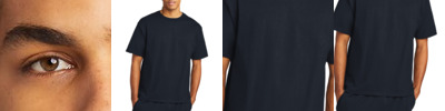 A hint of stretch. All-day comfort. 4.3-ounce (145 GSM) 57/38/5 combed ring spun cotton/polyester/spandex, 40 singles 1x1 rib knit neck Shoulder to shoulder taping Tear-away label